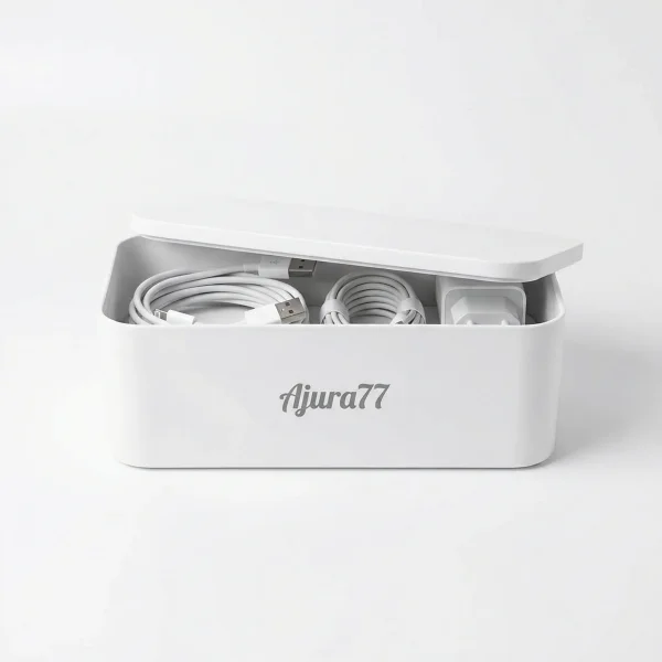 Organizer Kabel Ajura77 merapikan kabel charger dan adaptor. Kotak penyimpanan praktis untuk meja kerja. Bahan ABS, tutup transparan. Cocok rumah dan kantor.