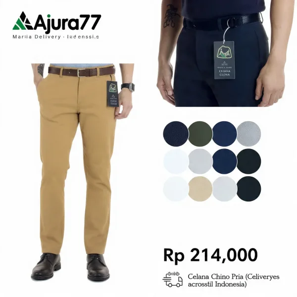 Celana chino berkualitas di Ajura77. Pakaian harga hemat, pengiriman cepat.