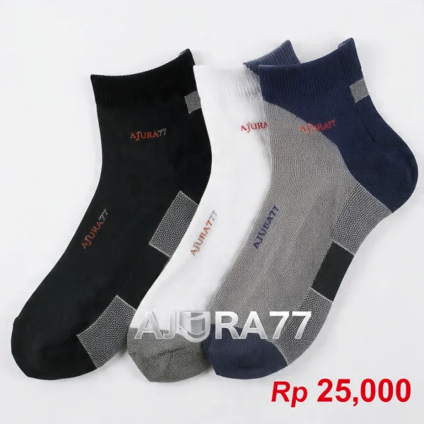 Kaus kaki katun Ajura77 dari bahan lembut dan menyerap keringat. Elastis nyaman, cocok sehari-hari atau olahraga. Pack 3-5 pasang.